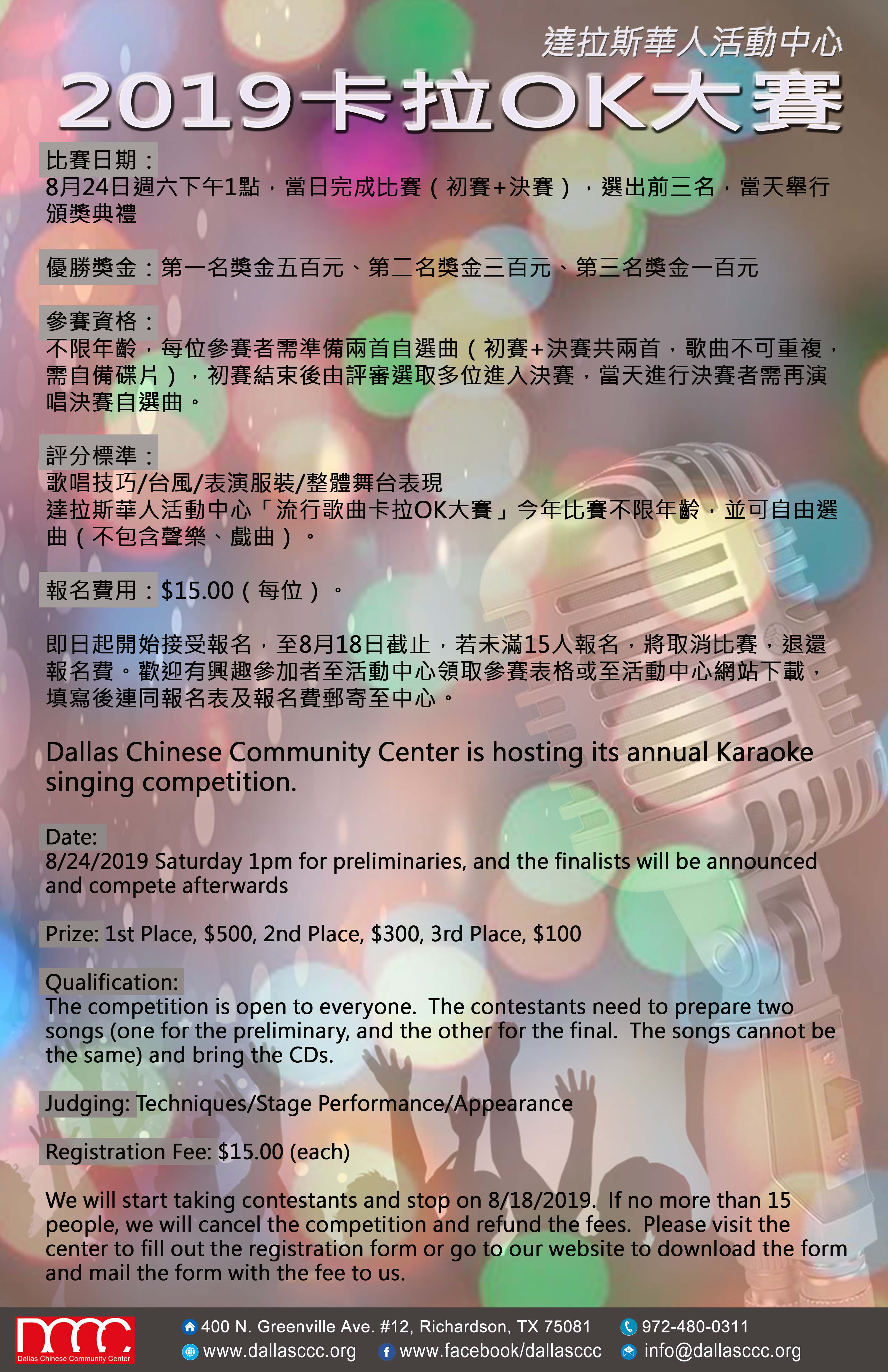 2019 Karaoke Singing Competition, 8/24/2019 1:00pm