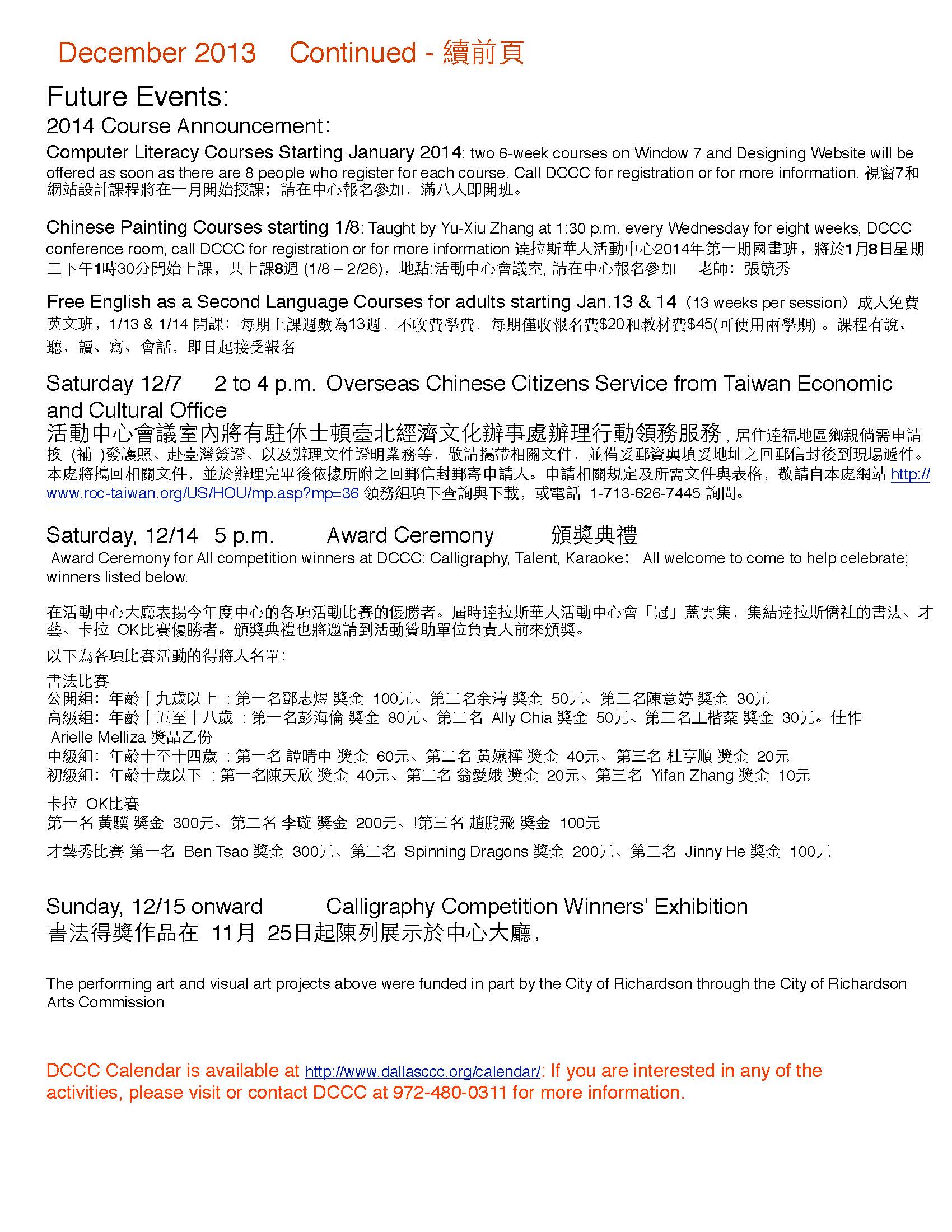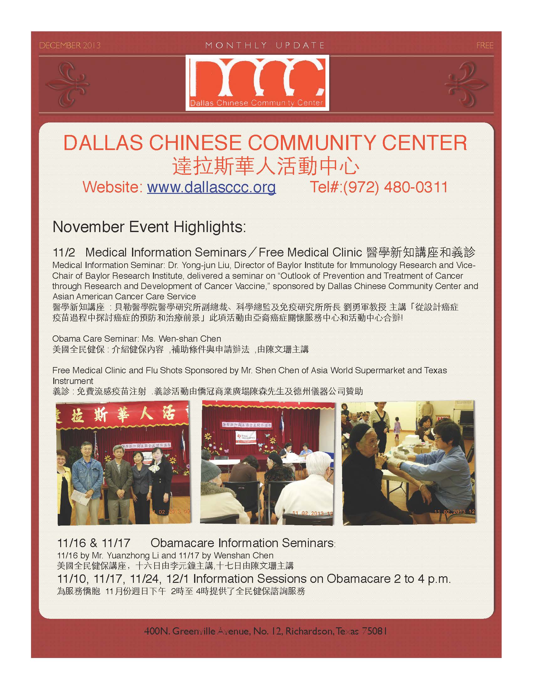 活動中心聯絡電話: 972-480-0311