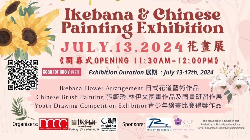 主辦方: Dallas Chinese Community Center, Ikebana International Dallas Chapter 13, and Sogetsu School of Ikebana Dallas Branch