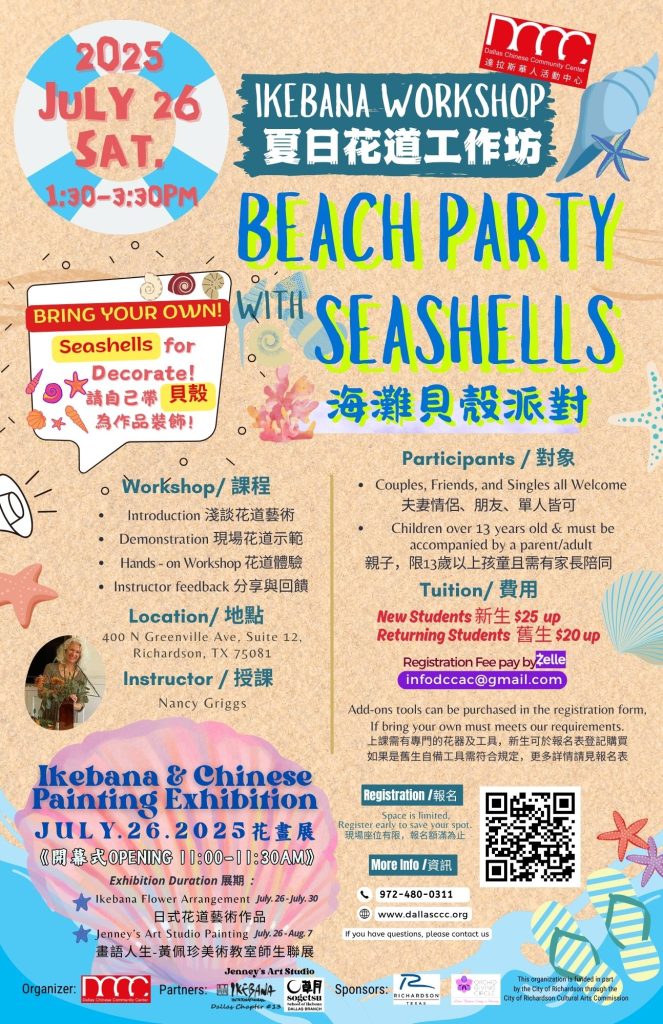 2025 達拉斯華人活動中心夏日花道工作坊🏝海灘貝殼派對